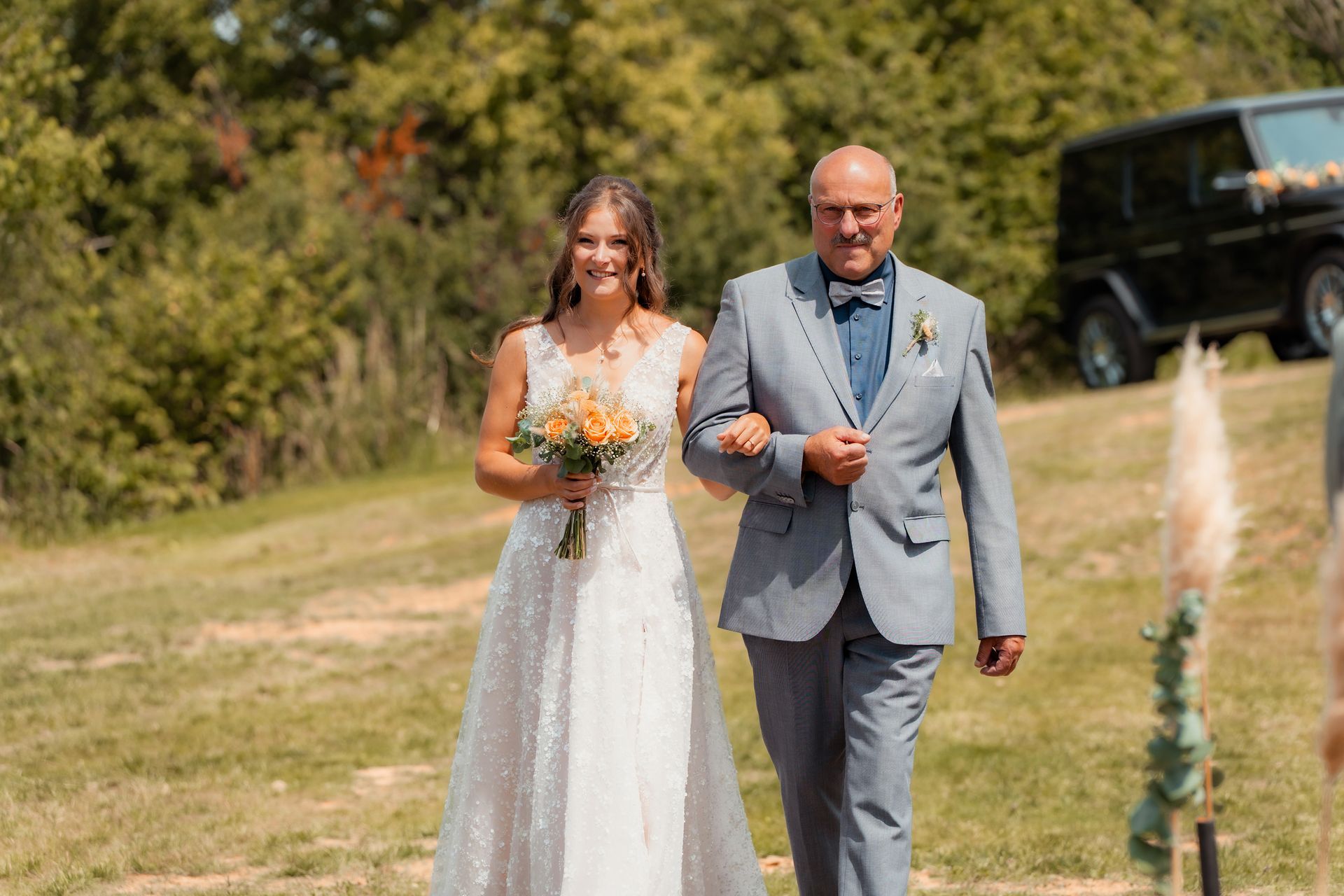 Martina Klaes begleitet, deren Worte die Herzen aller Anwesenden berührten. Als Maresa langsam an der Hand ihres Vaters auf Florian zulief, spürte man die Liebe, die Freude und die Aufregung, die in der Luft lagen. Jeder Blick, jedes Lächeln erzählte die Geschichte zweier Menschen, die genau füreinander bestimmt sind.