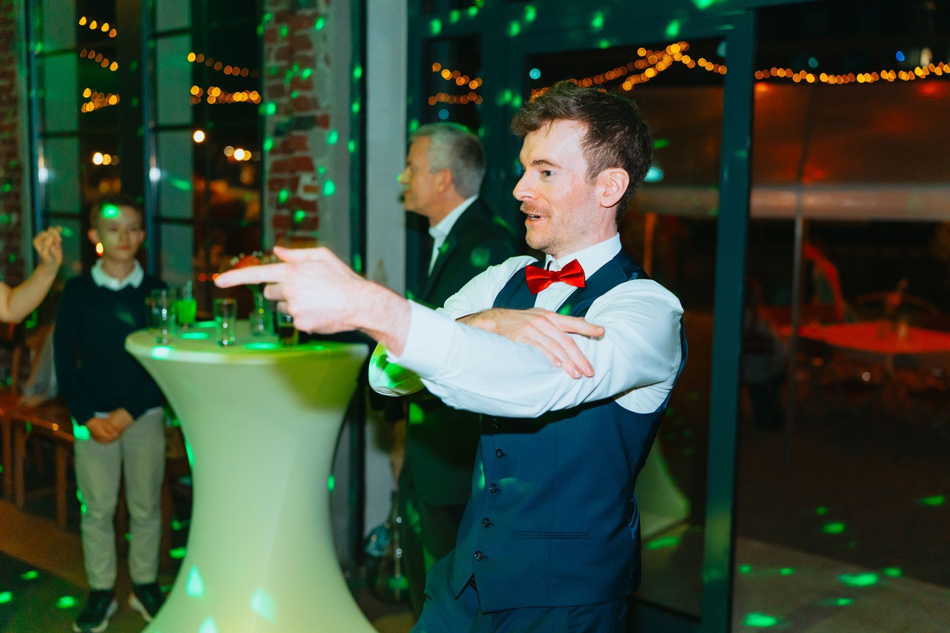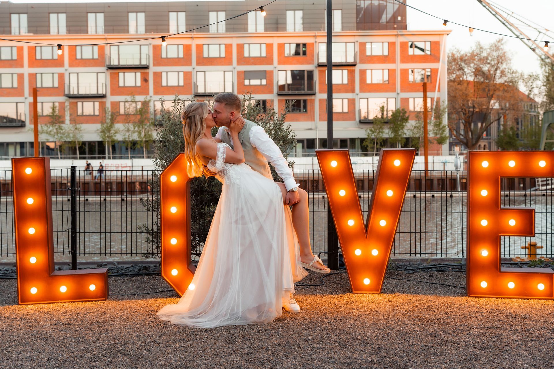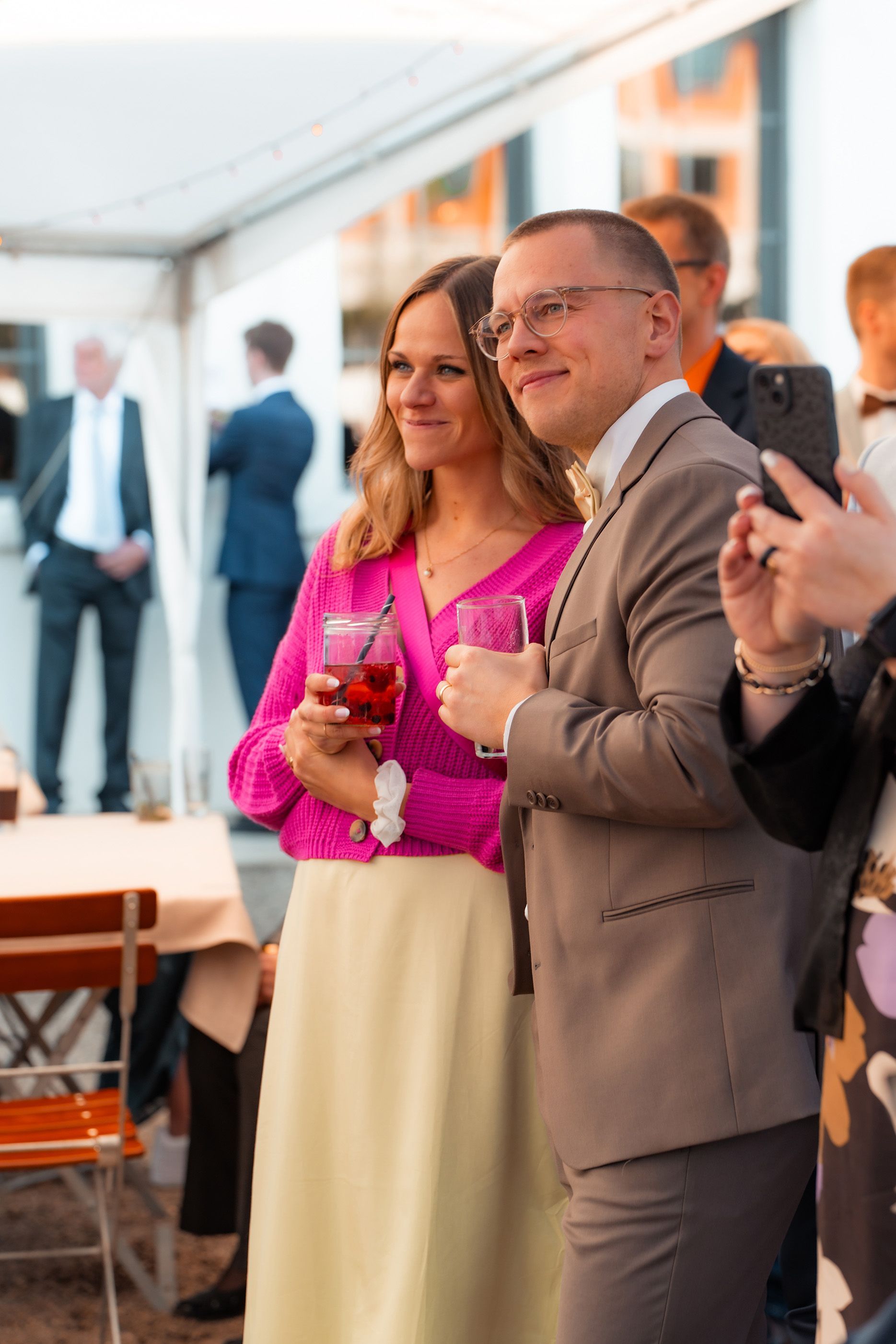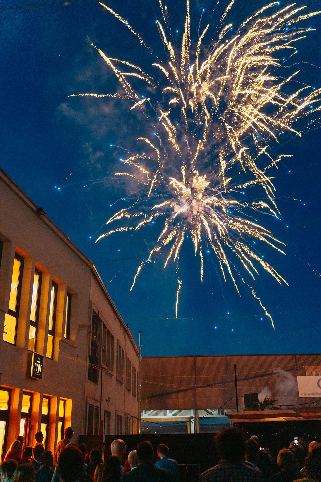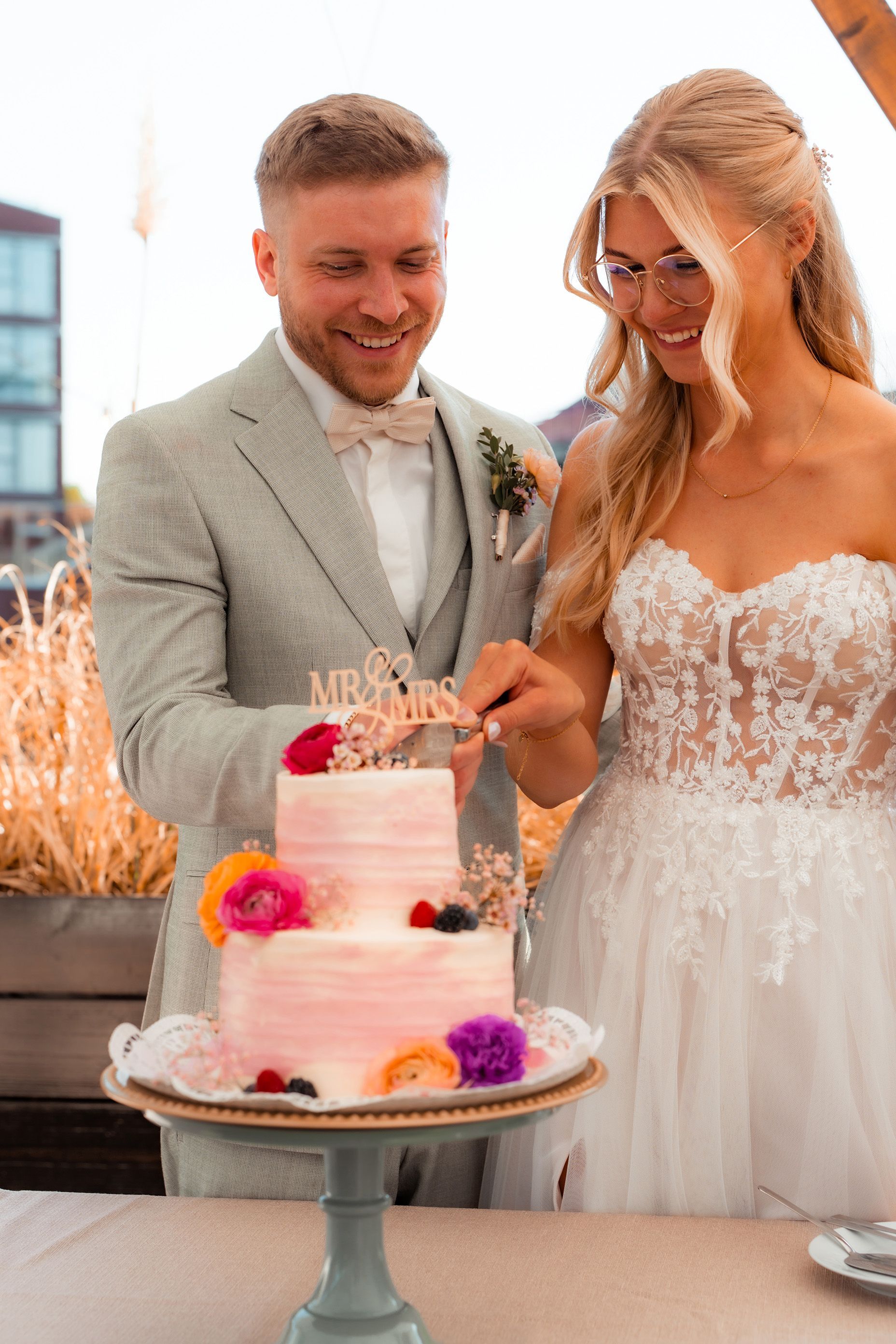 Für die Feier ging es weiter ins TYDE Dortmund – eine moderne, stilvolle Location direkt am Wasser. Dort wurde zunächst die Hochzeitstorte angeschnitten, bevor das festliche Buffet eröffnet wurde. Doch das absolute Highlight wartete am Abend: Als Überraschung für ihre Gäste hatten Hanna und Stefan ein Feuerwerk vorbereitet, das den Himmel über Dortmund erstrahlen ließ. Ein einzigartiger Moment, der für immer in Erinnerung bleiben wird.