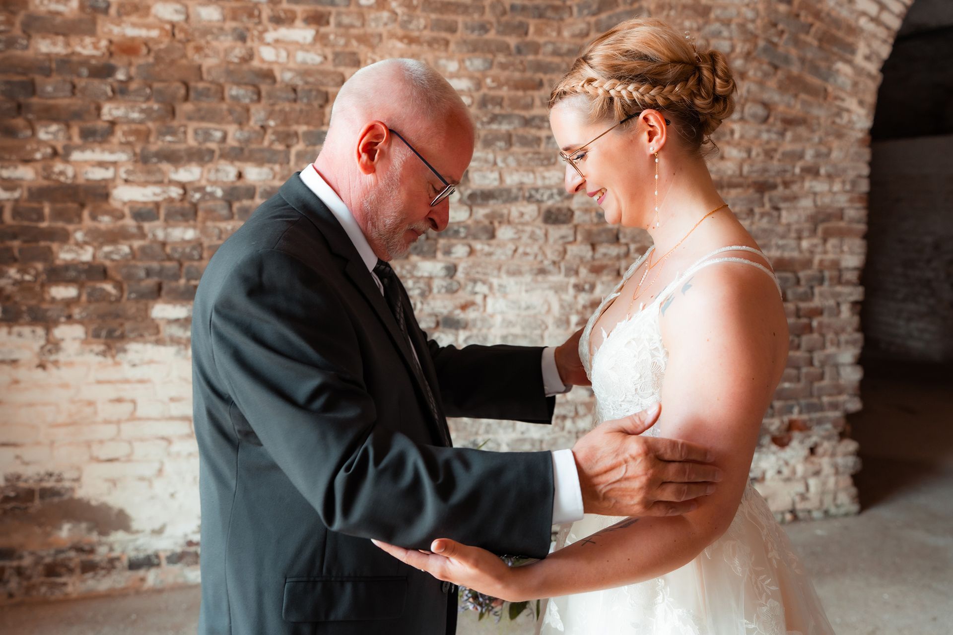 Der Tag begann mit einem ganz besonderen Moment: dem First Look. Zuerst sah der Bräutigam seine Braut – voller Emotionen und spürbarer Vorfreude. Kurz darauf folgte ein weiterer Gänsehautmoment, als auch der Brautvater seine Tochter zum ersten Mal im Brautkleid erblickte. Zwei Begegnungen, die an Intensität kaum zu übertreffen waren.