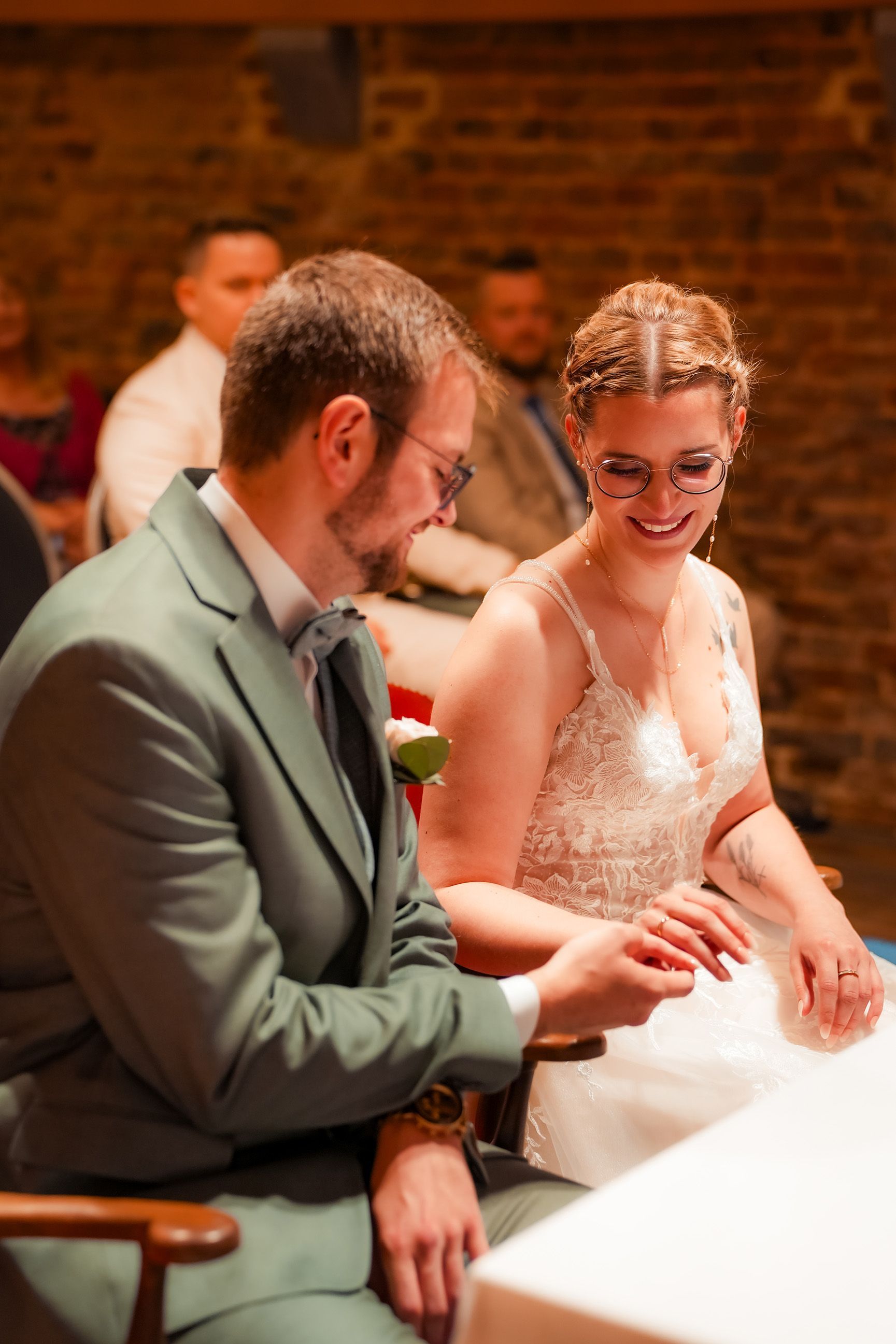 Eine standesamtliche Trauung muss nicht groß sein, um unvergesslich zu werden – das hat dieser wunderschöne Tag im Pulvermagazin Jülich mehr als gezeigt. Im kleinen, familiären Kreis gaben sich die beiden das Ja-Wort und feierten anschließend in der Blumenhalle, umringt von ihren Liebsten.